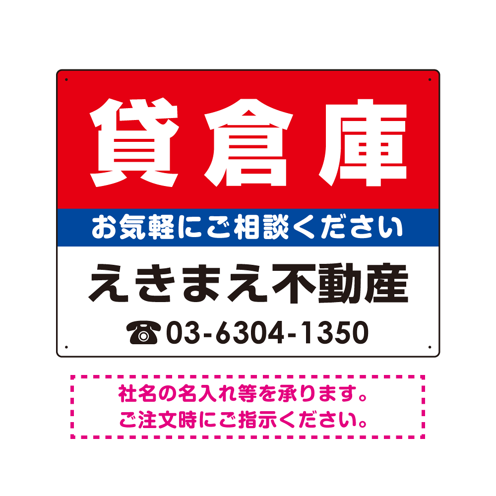 表示内容「貸倉庫」不動産向けプレート看板。