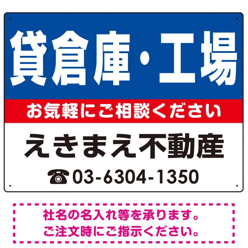 貸倉庫・工場 オリジナル プレート看板 青背景 W600×H450 エコユニボード (SP-SMD221-60x45U)