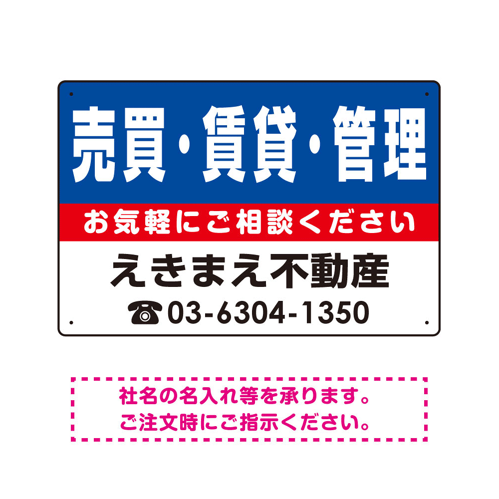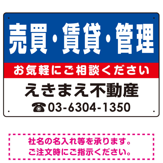 売買・賃貸・管理 オリジナル プレート看板 青背景 W450×H300 エコユニボード (SP-SMD223-45x30U)