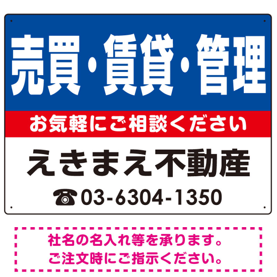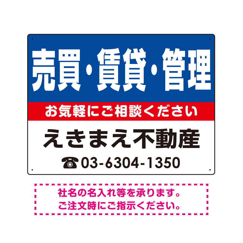 売買・賃貸・管理 オリジナル プレート看板 青背景 W600×H450 エコユニボード (SP-SMD223-60x45U)