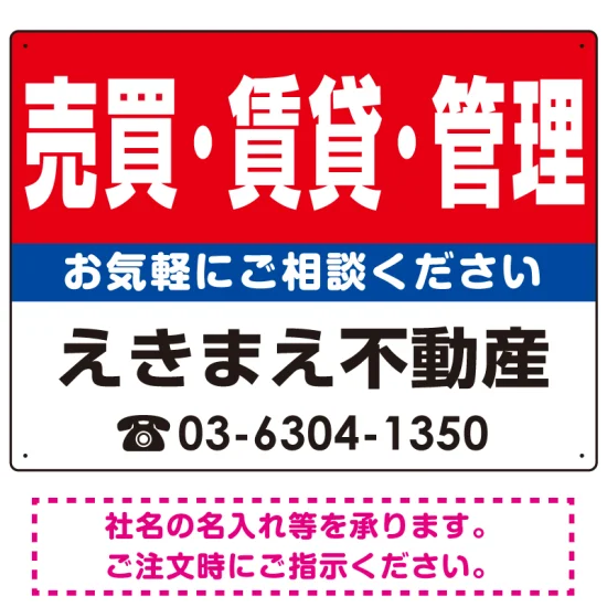 売買・賃貸・管理 オリジナル プレート看板 赤背景 W600×H450 アルミ複合板 (SP-SMD181-60x45A)
