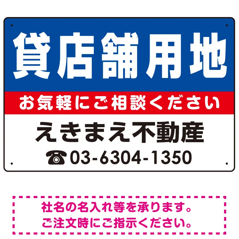 貸店舗用地 オリジナル プレート看板 青背景 W450×H300 エコユニボード (SP-SMD224-45x30U)