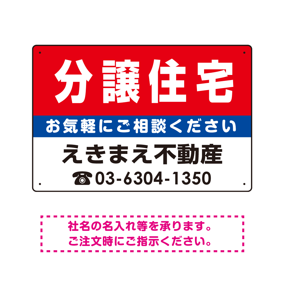 分譲住宅 オリジナル プレート看板 赤背景 W450×H300 エコユニボード (SP-SMD183-45x30U)