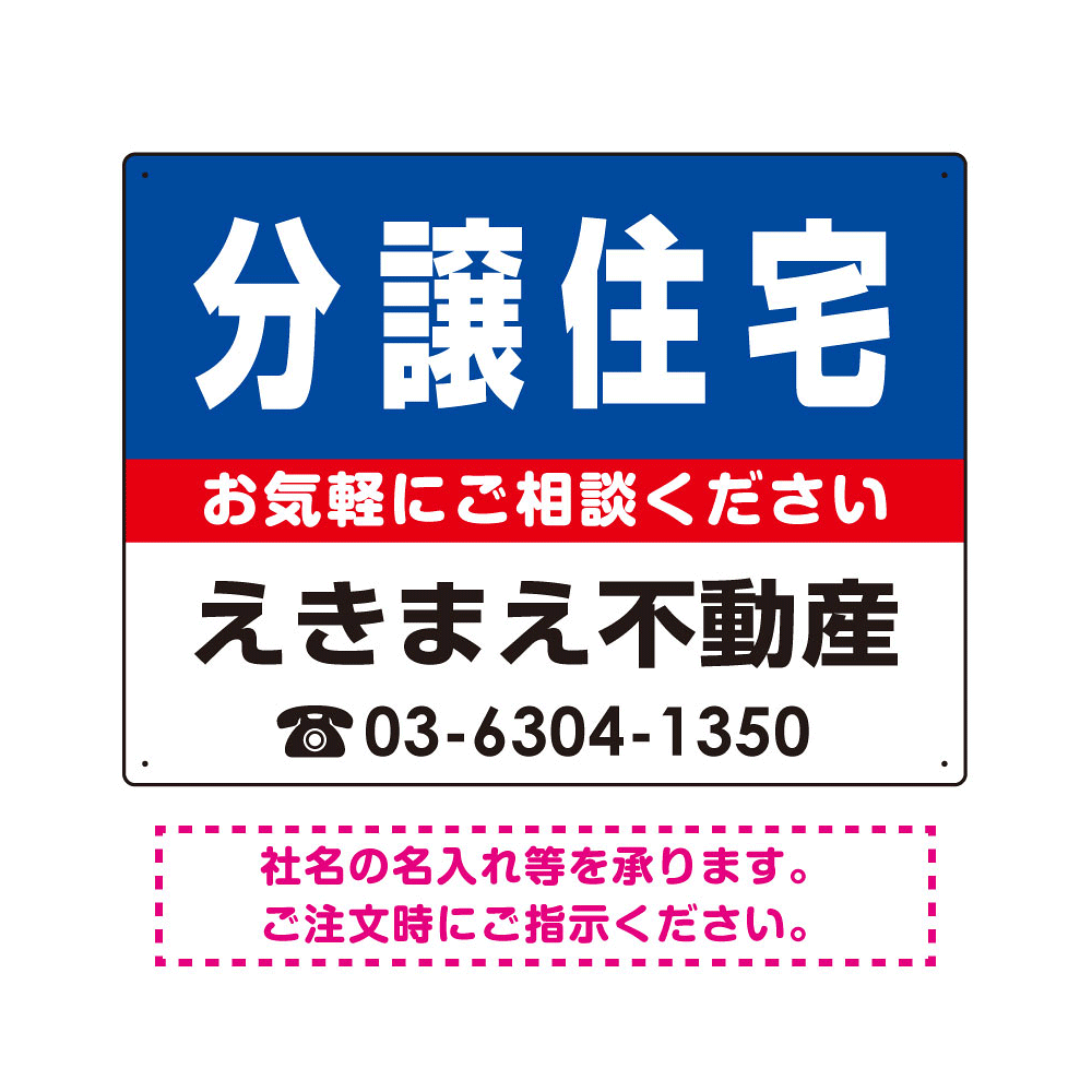分譲住宅 オリジナル プレート看板 青背景 W600×H450 エコユニボード (SP-SMD225-60x45U)