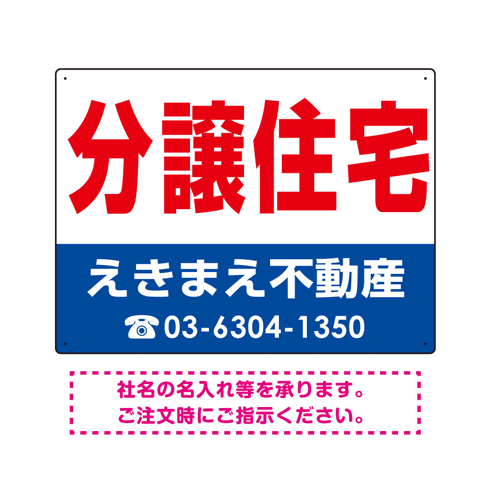 表示内容「分譲住宅」不動産向けプレート看板。