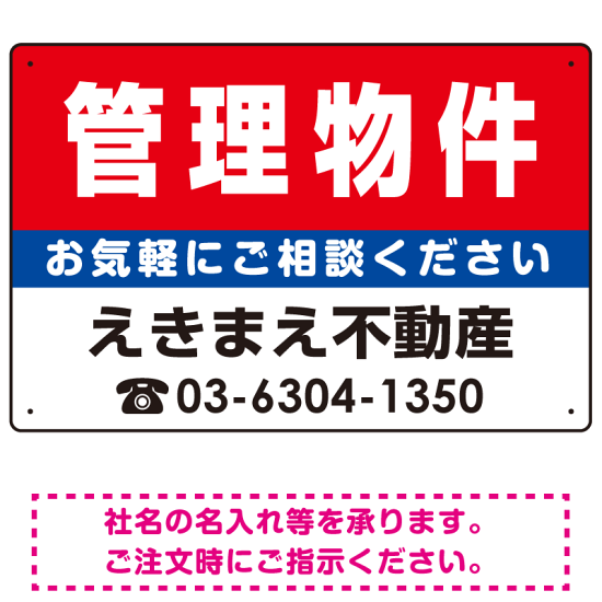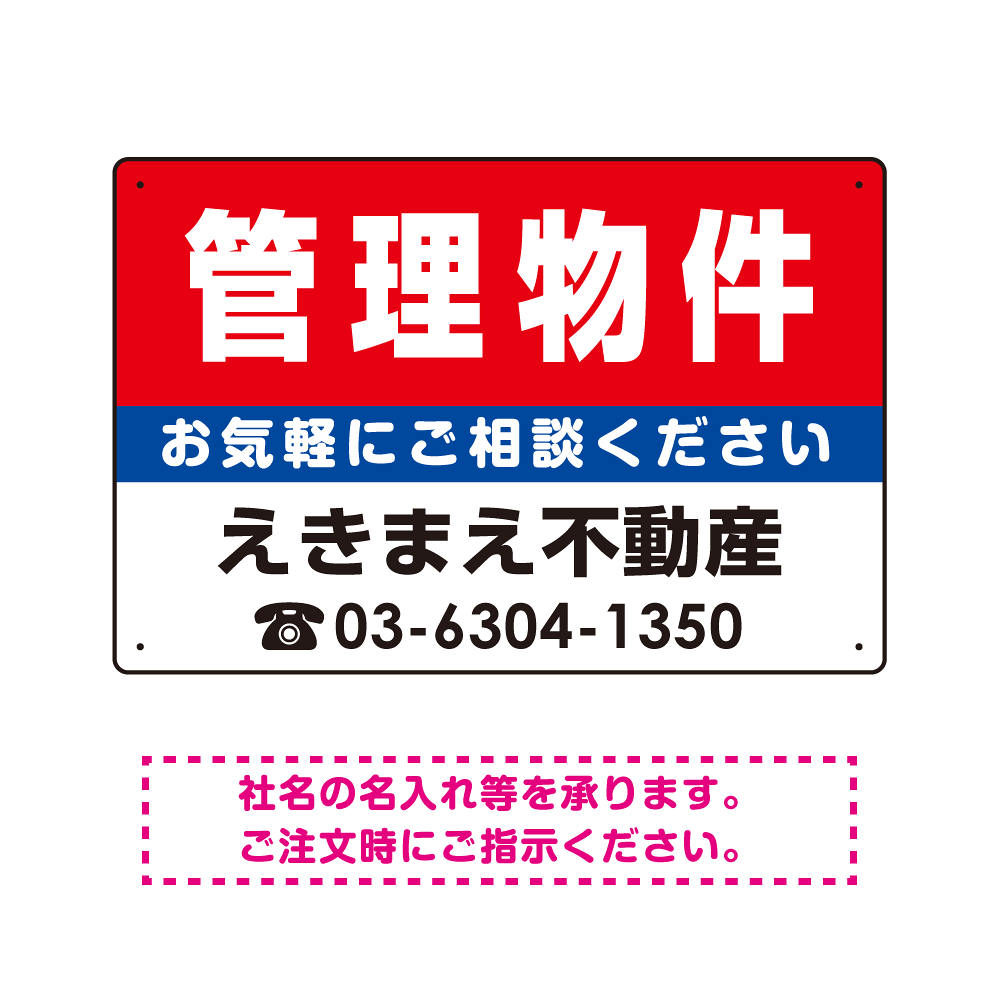 管理物件 オリジナル プレート看板 赤背景 W450×H300 エコユニボード (SP-SMD185-45x30U)