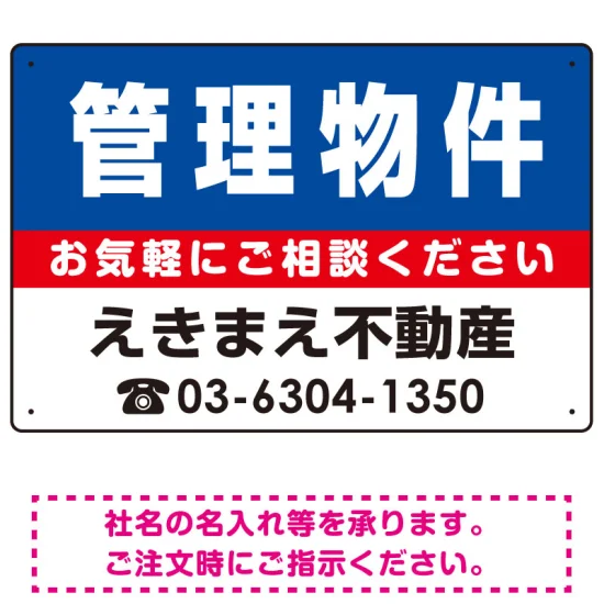 - 管理物件 オリジナル プレート看板 青背景 W450×H300 アルミ複合板 (SP-SMD227-45x30A)
