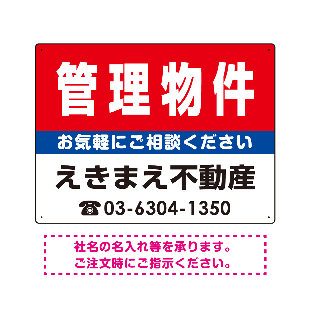 商品説明:管理物件 オリジナル プレート看板 赤背景 W600×H450 エコユニボード (SP-SMD185-60x45U)