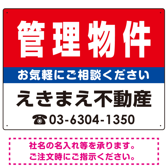 管理物件 オリジナル プレート看板 赤背景 W600×H450 エコユニボード (SP-SMD185-60x45U)