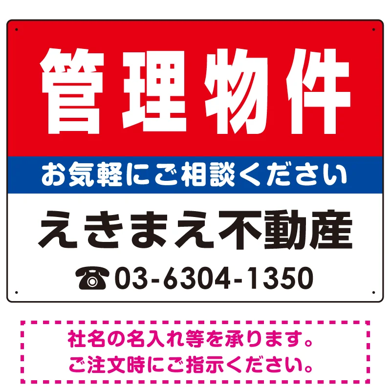 - 管理物件 オリジナル プレート看板 赤背景 W600×H450 アルミ複合板 (SP-SMD185-60x45A)