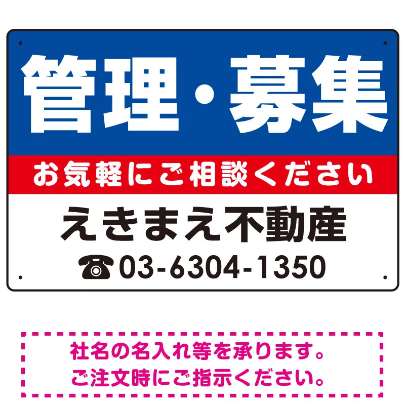 管理・募集 オリジナル プレート看板 青背景 W450×H300 アルミ複合板 (SP-SMD228-45x30A)