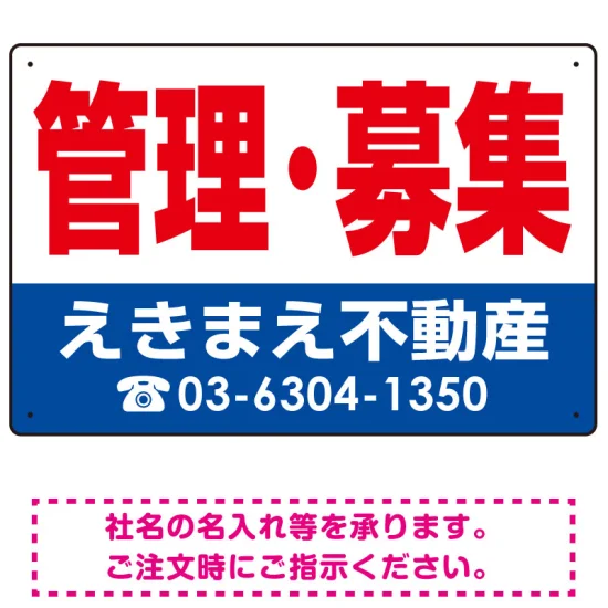 管理・募集 オリジナル プレート看板 赤文字 W450×H300 アルミ複合板 (SP-SMD271-45x30A)