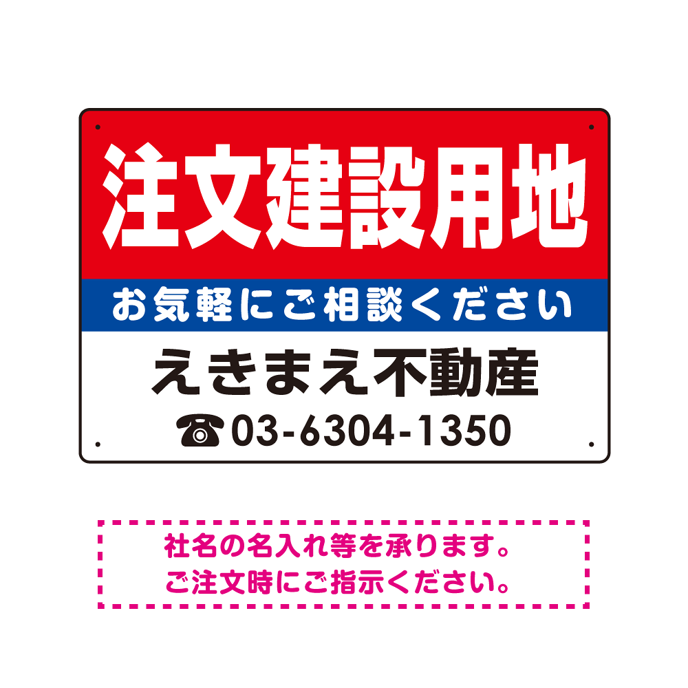 注文建築用地 オリジナル プレート看板 赤背景 W450×H300 エコユニボード (SP-SMD187-45x30U)