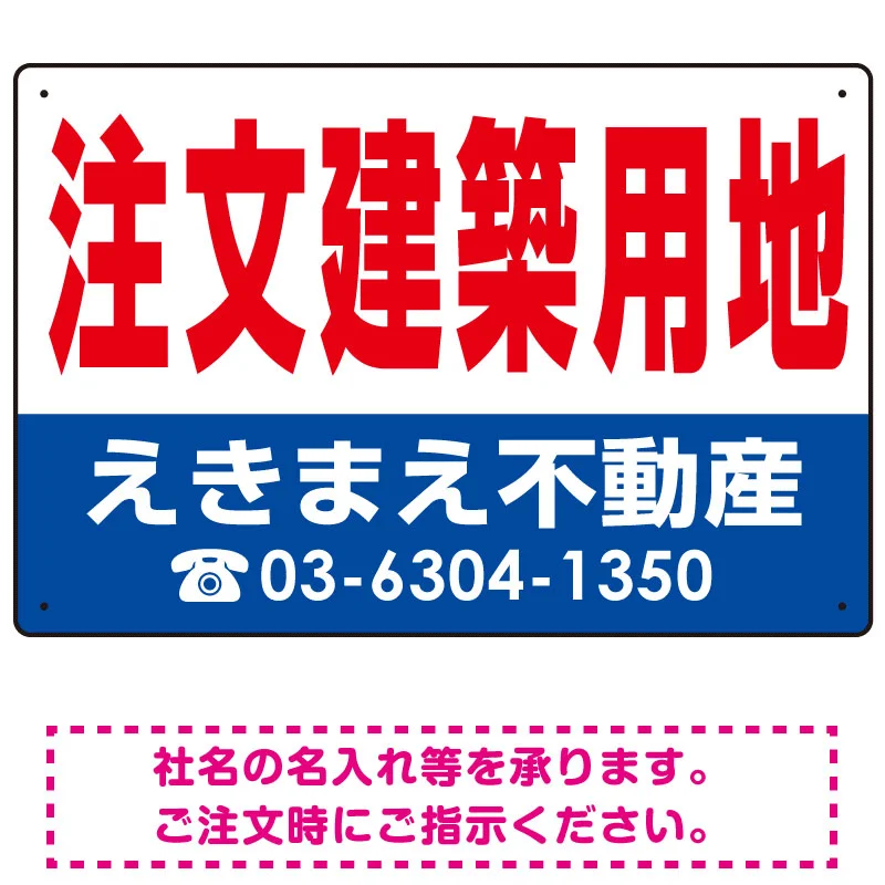 注文建築用地 オリジナル プレート看板 赤文字 W450×H300 エコユニボード (SP-SMD272-45x30U)