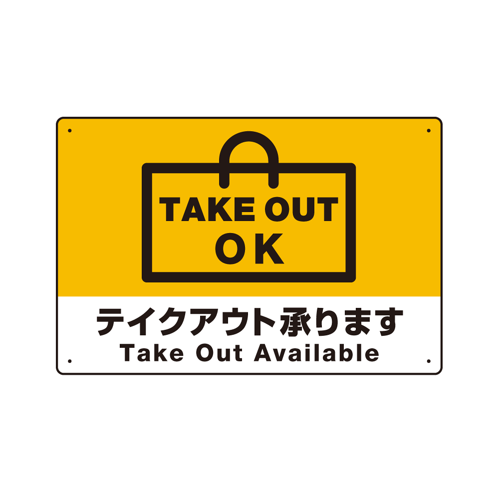 - 手提げ袋風のイラスの中に「TAKE OUT OK」を表示。直感的に分かりやすいお持ち帰りをアピールします。