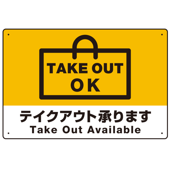 商品説明:TAKEOUT OK テイクアウト承ります 手提げ袋デザイン オリジナルプレート看板 イエロー W450×H300 エコユニボード (SP-SMD337-45x30U)