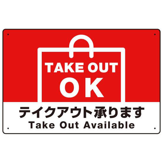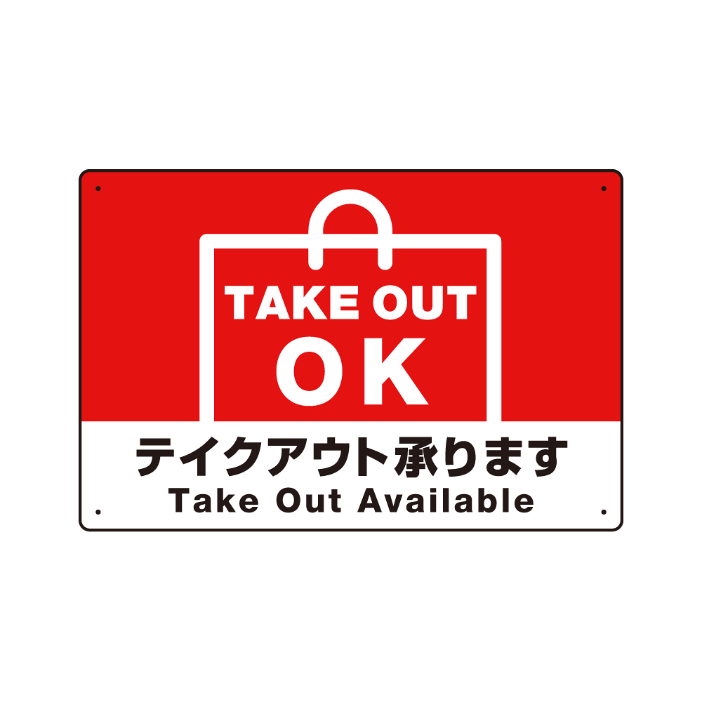 TAKEOUT OK テイクアウト承ります 手提げ袋デザイン オリジナルプレート看板 レッド W450×H300 エコユニボード (SP-SMD339-45x30U)