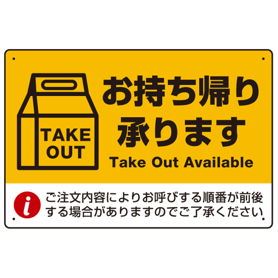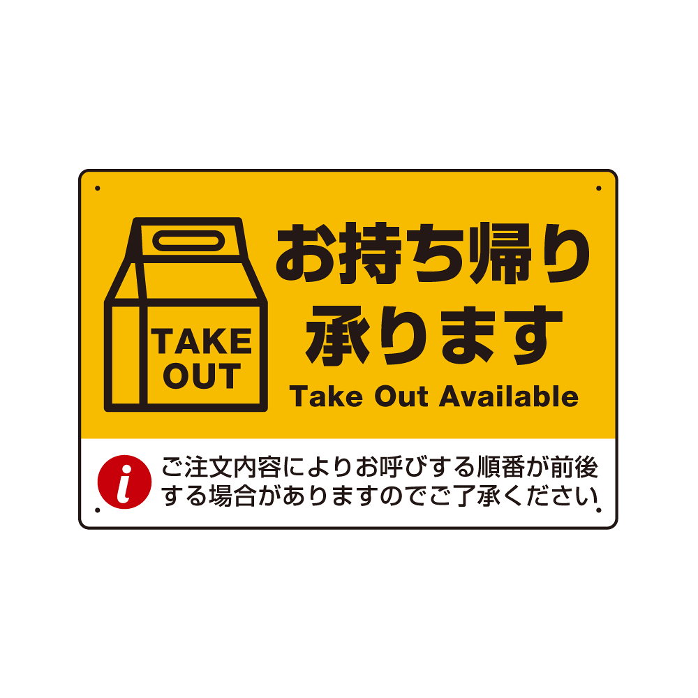紙袋風のイラストがポイントのお持ち帰り承ります表示プレート。