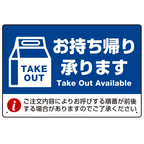 お持ち帰り承ります 紙袋風イラスト オリジナルプレート看板 ブルー W600×H450 エコユニボード (SP-SMD341-60x45U)