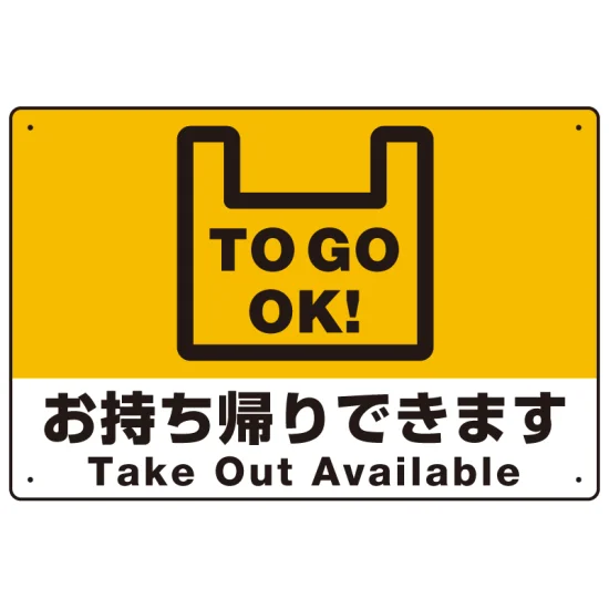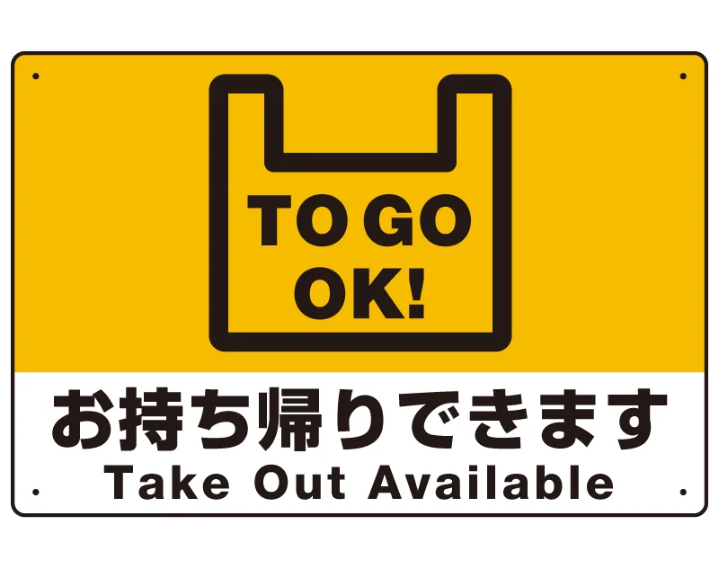 - 袋アイコンに「TO GO OK!」表記のアイコニックなデザインで直感的にお客様にテイクアウトをアピールします。