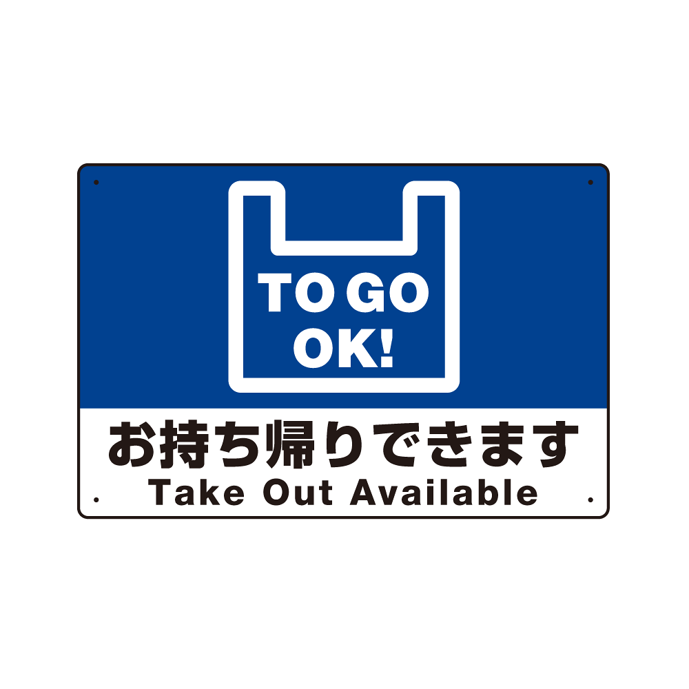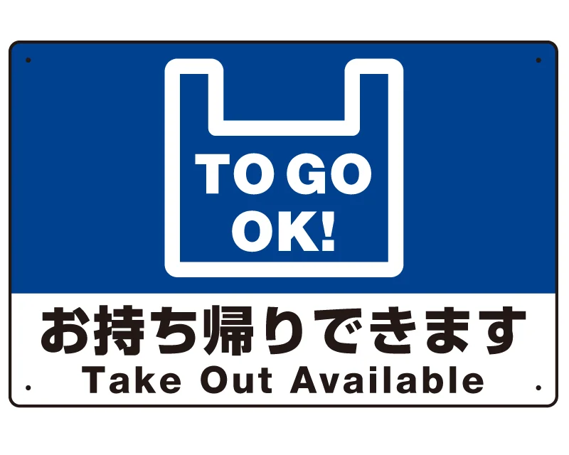 - 袋アイコンに「TO GO OK!」表記のアイコニックなデザインで直感的にお客様にテイクアウトをアピールします。