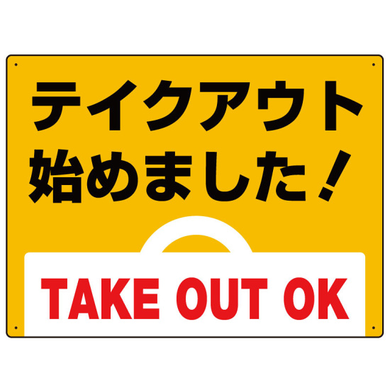 テイクアウト始めました オリジナルプレート看板 イエロー W450×H300 エコユニボード (SP-SMD350-45x30U)