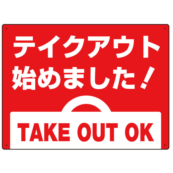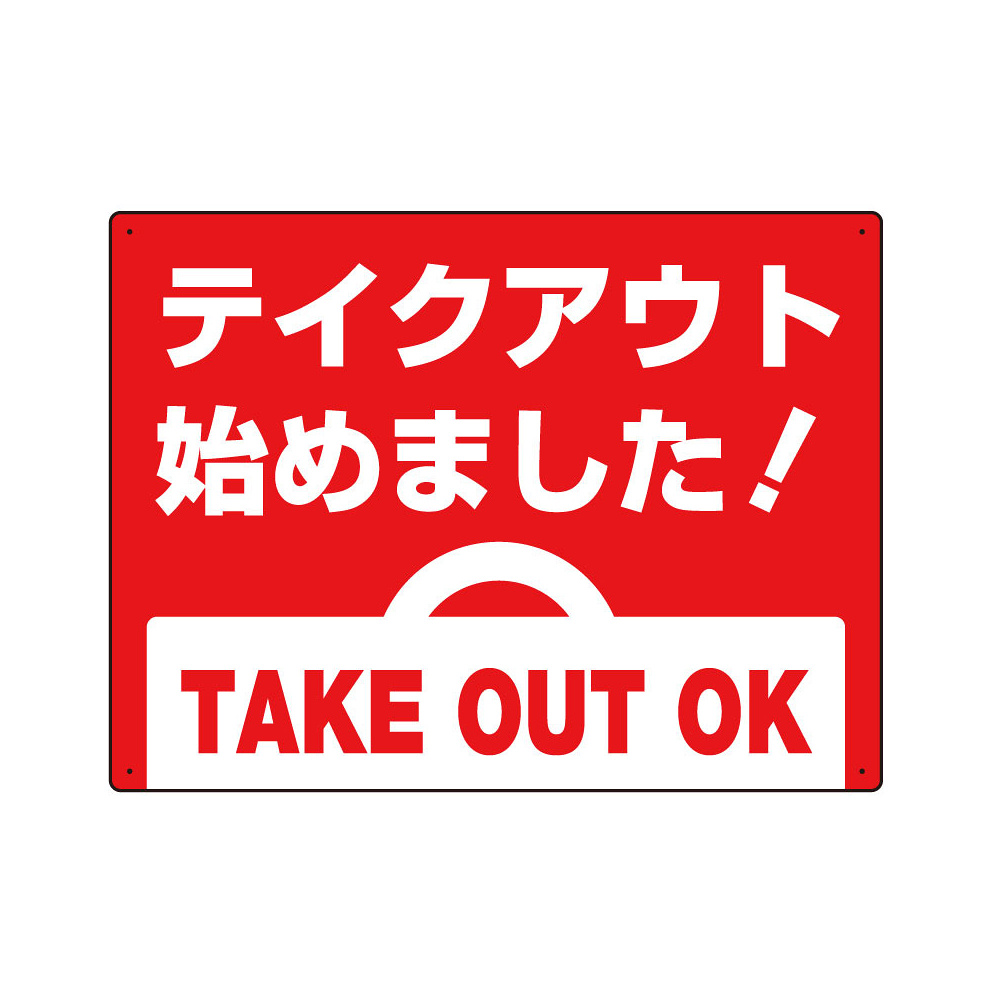 テイクアウト始めました オリジナルプレート看板 レッド W450×H300 エコユニボード (SP-SMD352-45x30U)