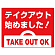 テイクアウト始めました!大きな文字でよく目を引きます。