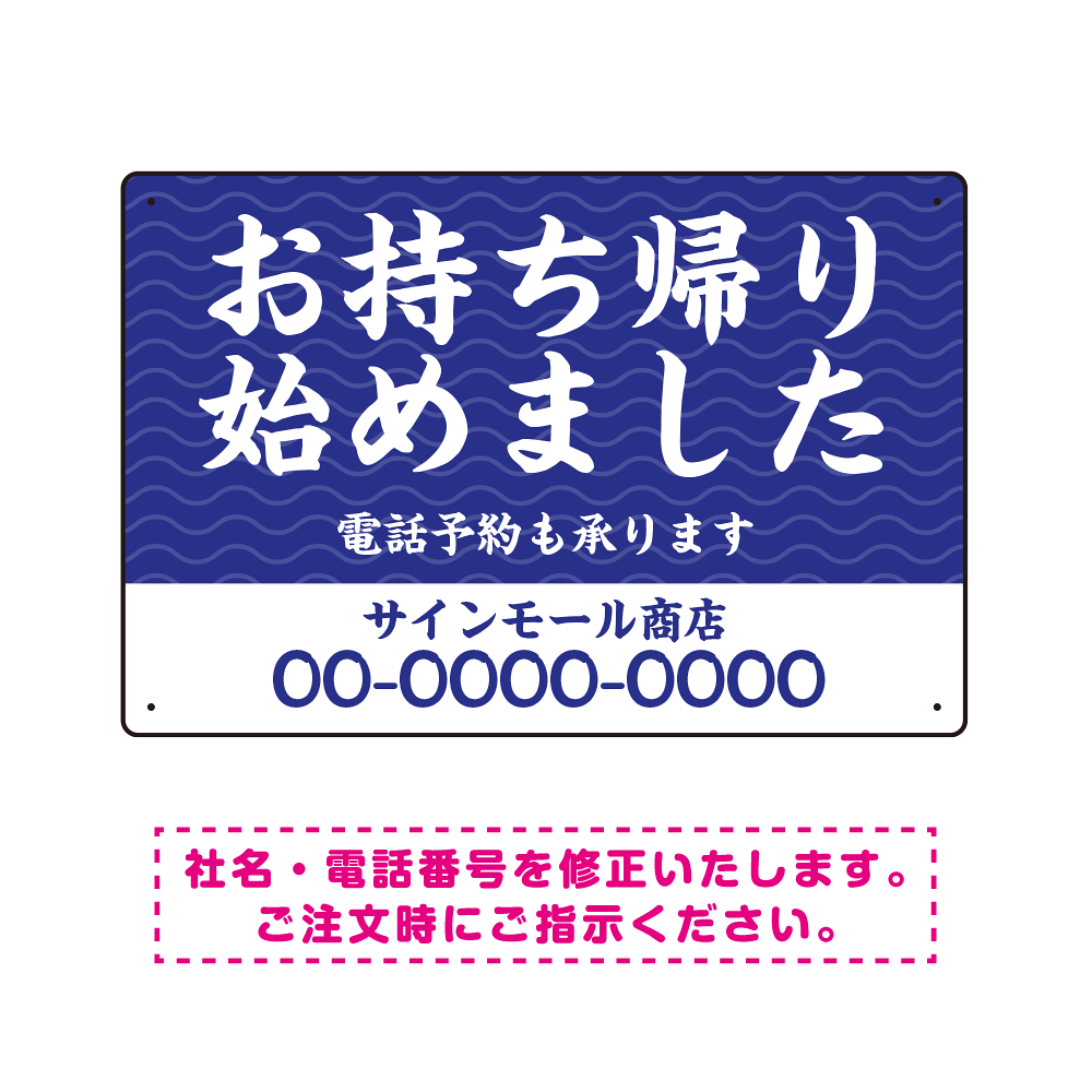 商品説明:波模様 お持ち帰り始めました オリジナルプレート看板 W450×H300 エコユニボード (SP-SMD353-45x30U)