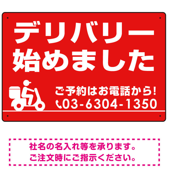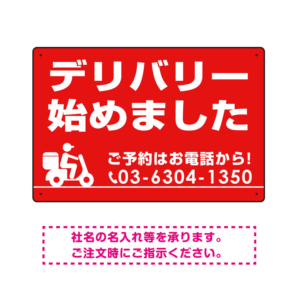 デリバリー始めました オリジナルプレート看板 レッド W450×H300 エコユニボード (SP-SMD356-45x30U)