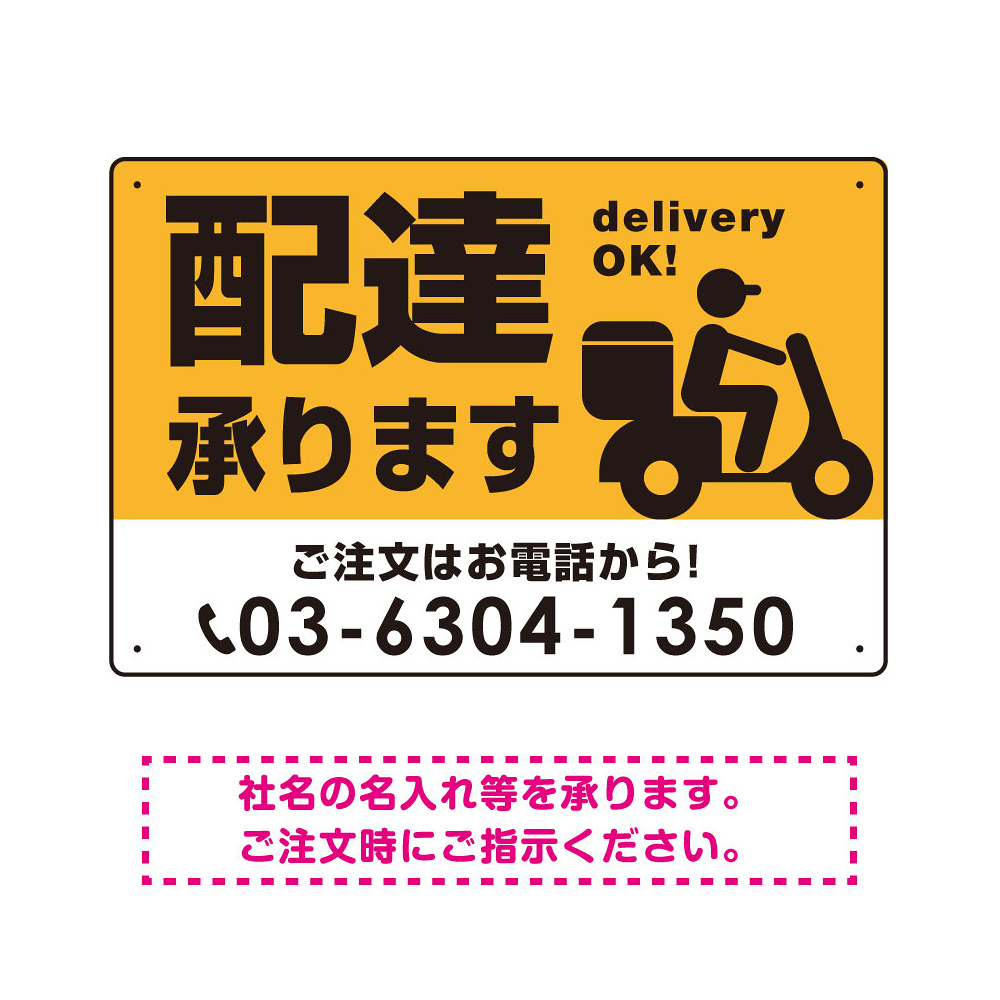 配達承ります delivery OK オリジナルプレート看板 イエロー W450×H300 エコユニボード (SP-SMD369-45x30U)
