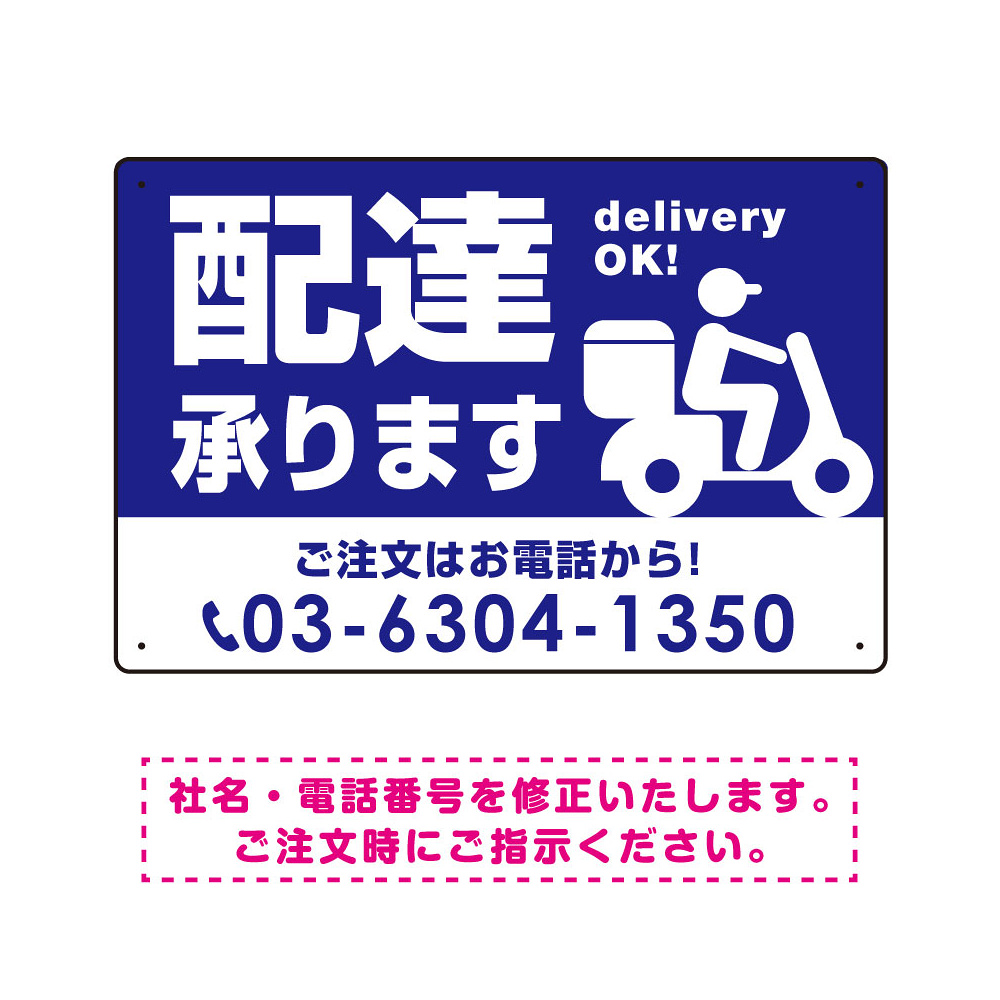 配達承ります delivery OK オリジナルプレート看板 ブルー W450×H300 エコユニボード (SP-SMD366-45x30U)