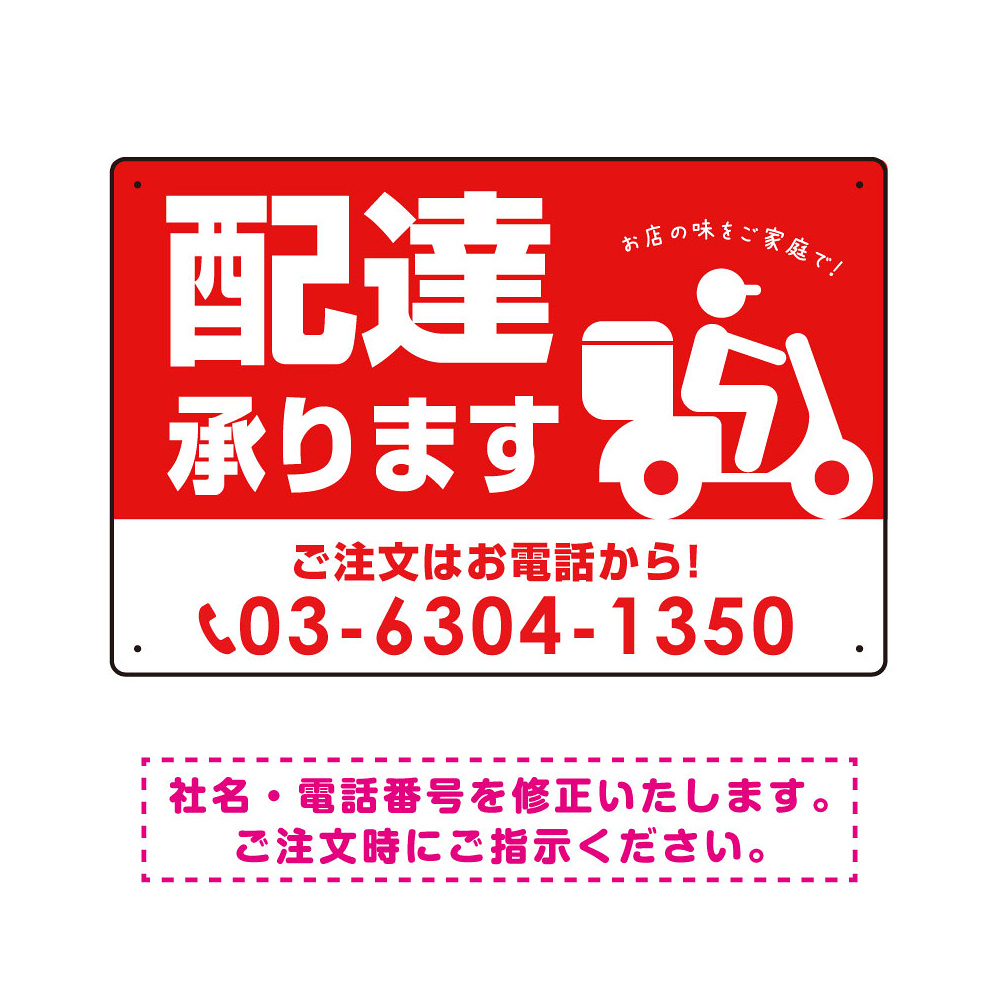 配達承ります delivery OK オリジナルプレート看板 レッド W450×H300 エコユニボード (SP-SMD358-45x30U)