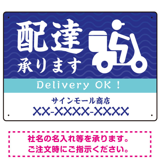 波模様 配達承ります オリジナルプレート看板 W450×H300 エコユニボード (SP-SMD359-45x30U)