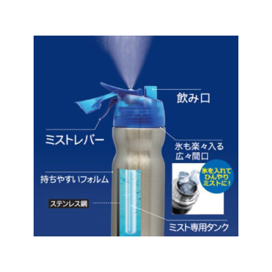 商品説明:冷却ミスト機能付真空断熱ドリンクボトル (HO-474)