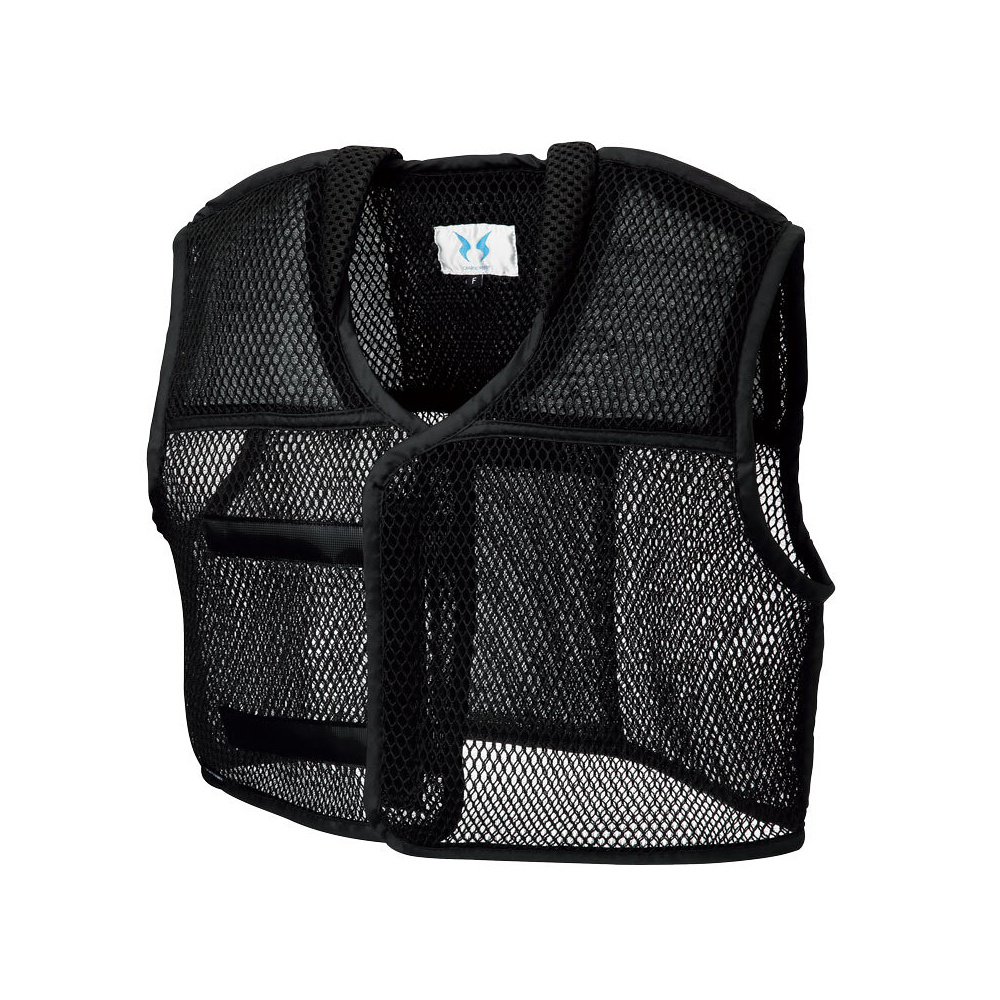 - 空調風神服の上から装着しても風の巡りを可能にする、3D素材のインナースペンサー