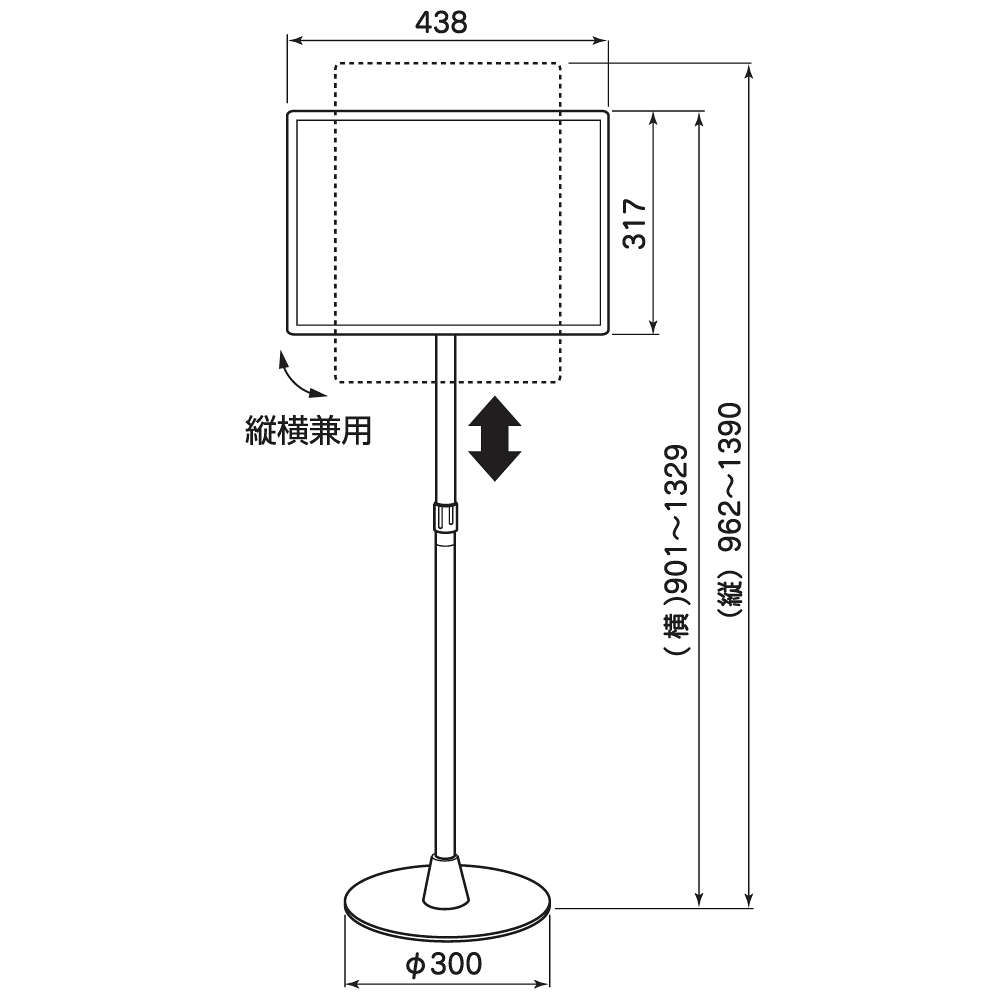 - 1台でタテ・ヨコ表示切り替え可能。