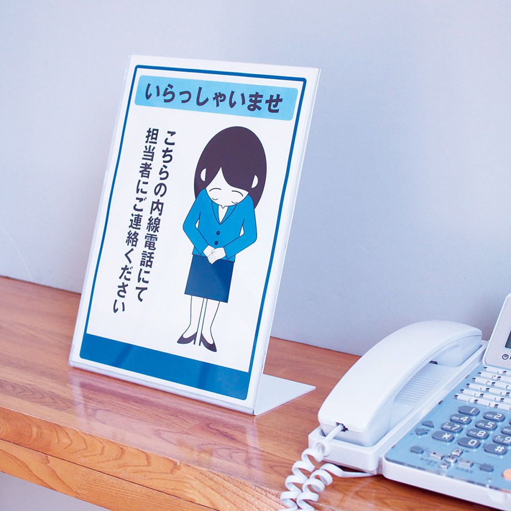 - 受付カウンターなどで必要な表示を簡単に掲示することができます。