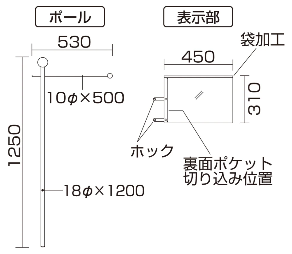 - 職場名や部署名などをA3用紙に出力して差し込める、ポケット式の避難誘導旗です。