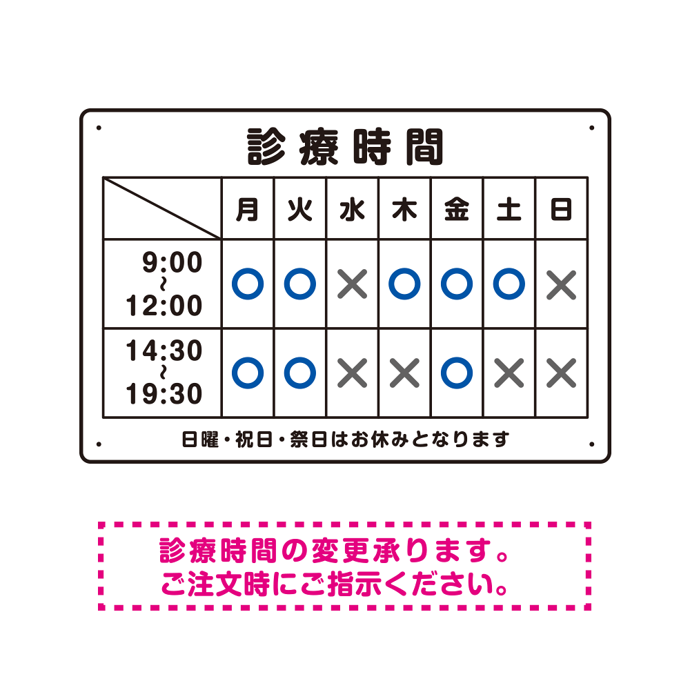 診療時間案内 白基調 病院・クリニック向けプレート看板 ブルー W450×H300 エコユニボード