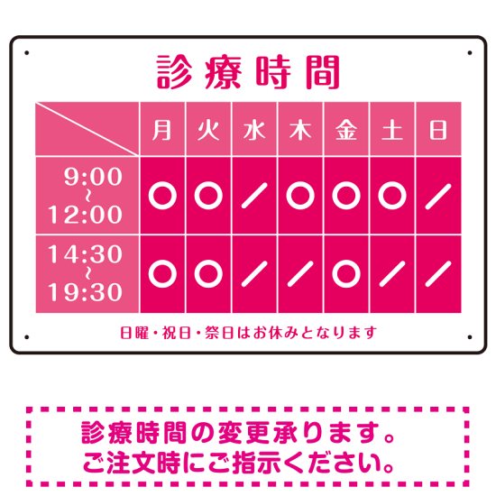 商品説明:診療時間案内 カラーデザイン 病院・クリニック向けプレート看板 ピンク W450×H300 エコユニボード