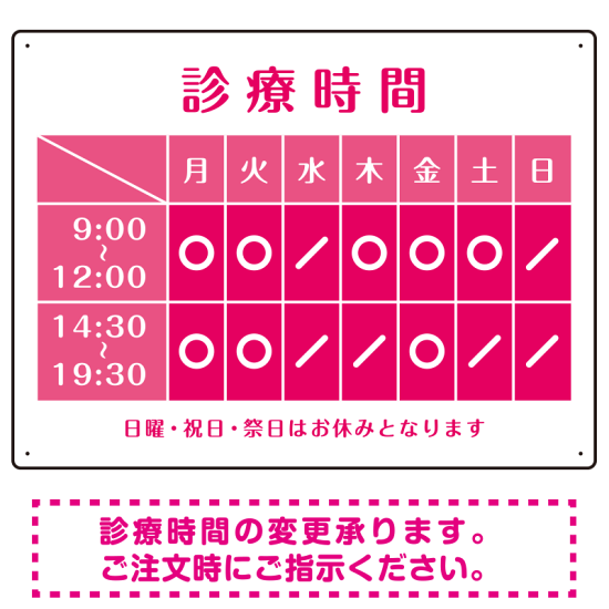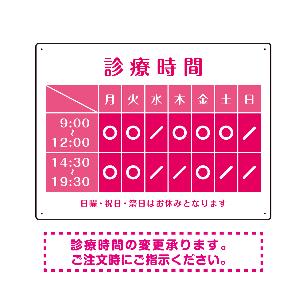 商品説明:診療時間案内 カラーデザイン 病院・クリニック向けプレート看板 ピンク W600×H450 エコユニボード