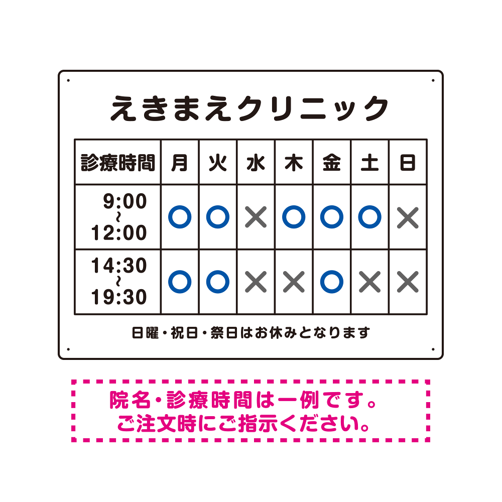 - デザイン上のクリニック名・診療時間はご希望の内容に修正してから印刷・製作・お届けいたします。