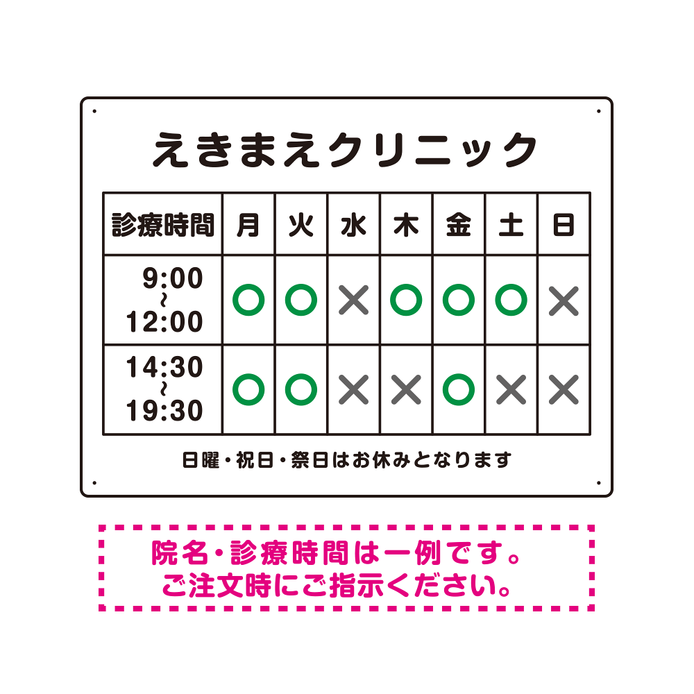 院名入れ・診療時間案内 白基調 病院・クリニック向けプレート看板 グリーン W600×H450 アルミ複合板