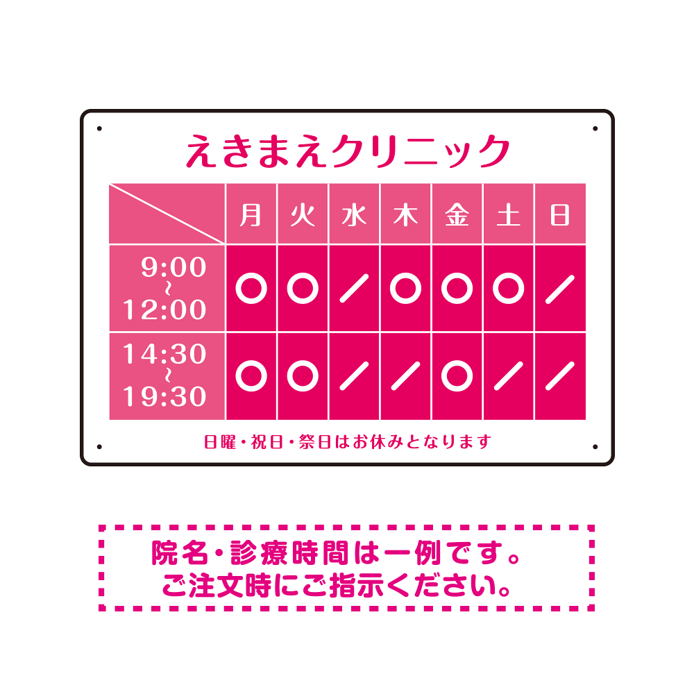 クリニック名付き診療時間案内 カラーデザイン 病院・クリニック向けプレート看板 ピンク W450×H300 エコユニボード