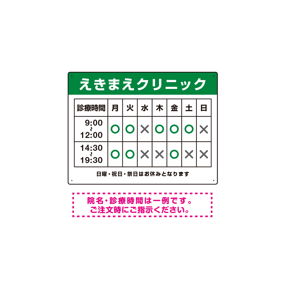 - デザイン上のクリニック名・診療時間はご希望の内容に修正してから印刷・製作・お届けいたします。