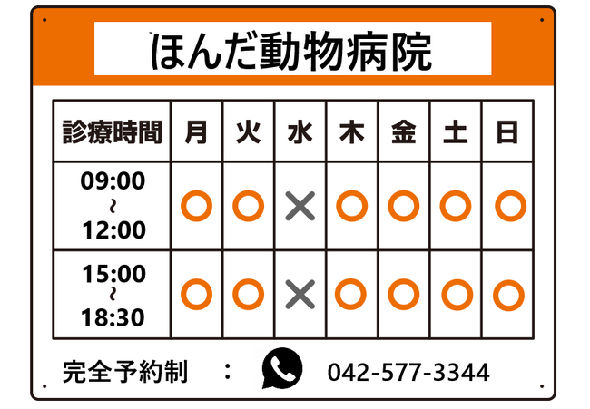 オーダー看板のデザイン面で「診療日」等の部分の文字をもう少し大きくしてもよかったかなと。