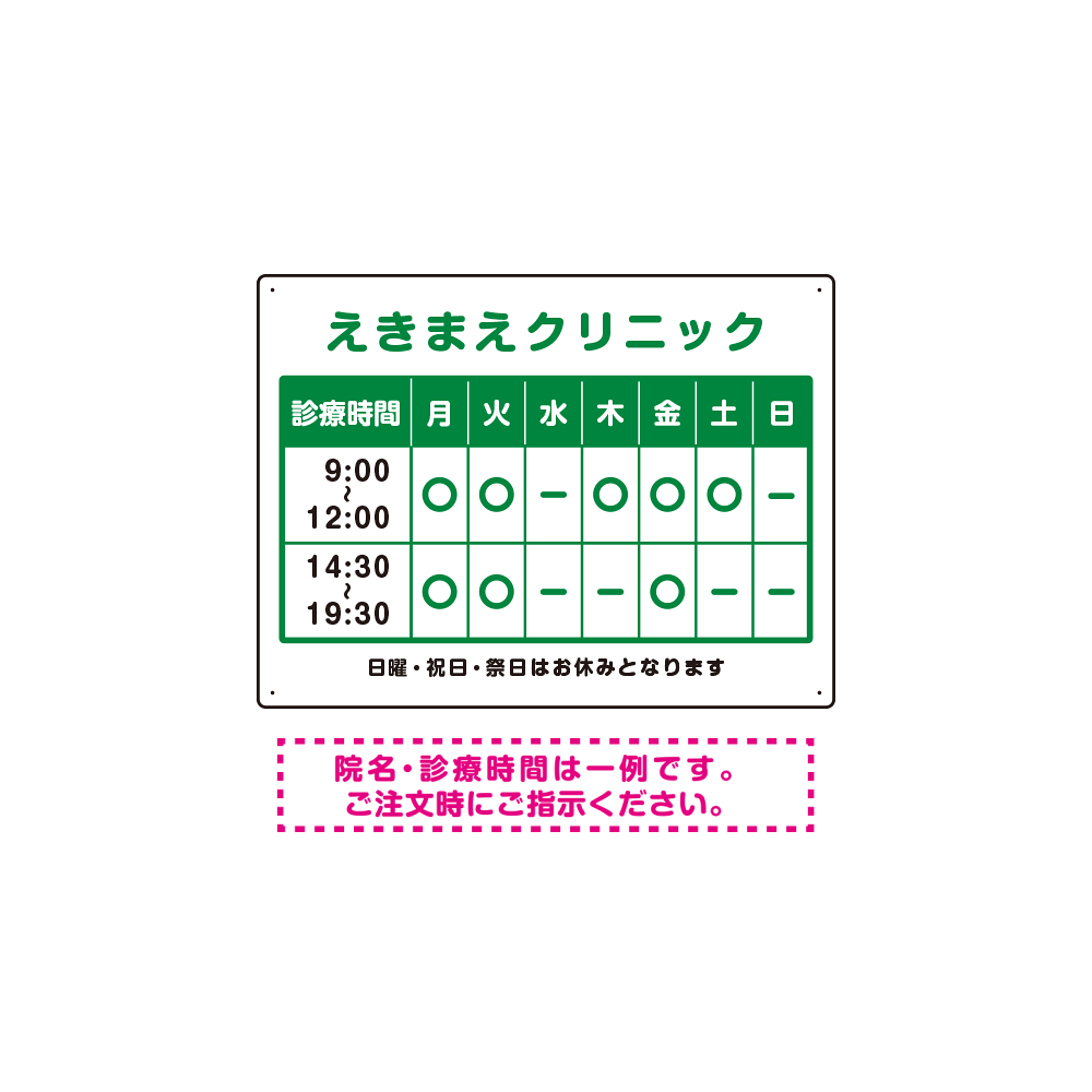 - デザイン上のクリニック名・診療時間はご希望の内容に修正してから印刷・製作・お届けいたします。