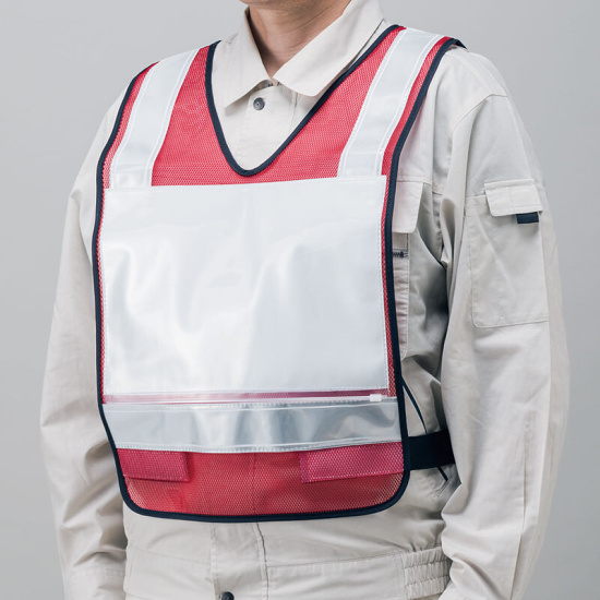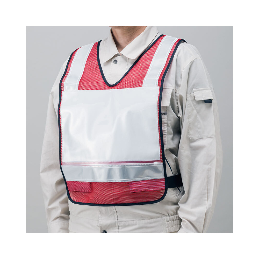 両面に付いたポケットにA4用紙を差し込んで表示できる反射ベスト。