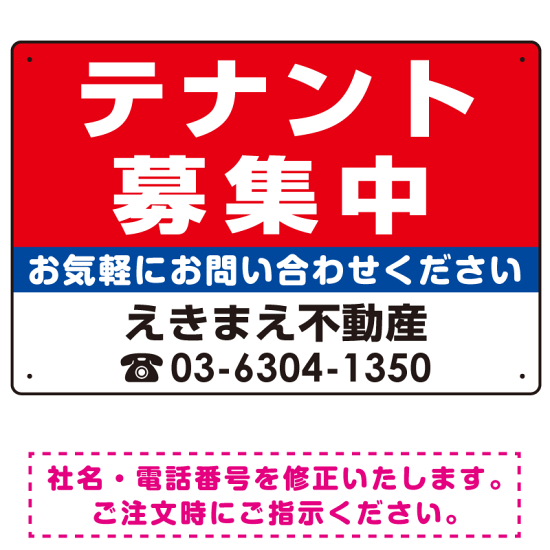 商品説明:テナント募集中 赤地・白文字 デザインA オリジナル プレート看板 W450×H300 エコユニボード